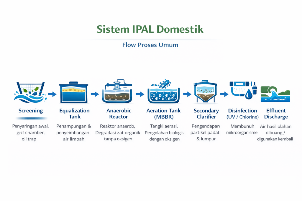 Kami menyediakan layanan menyeluruh, serupa dengan penyedia IPAL internasional, dari tahap awal hingga sistem berjalan.